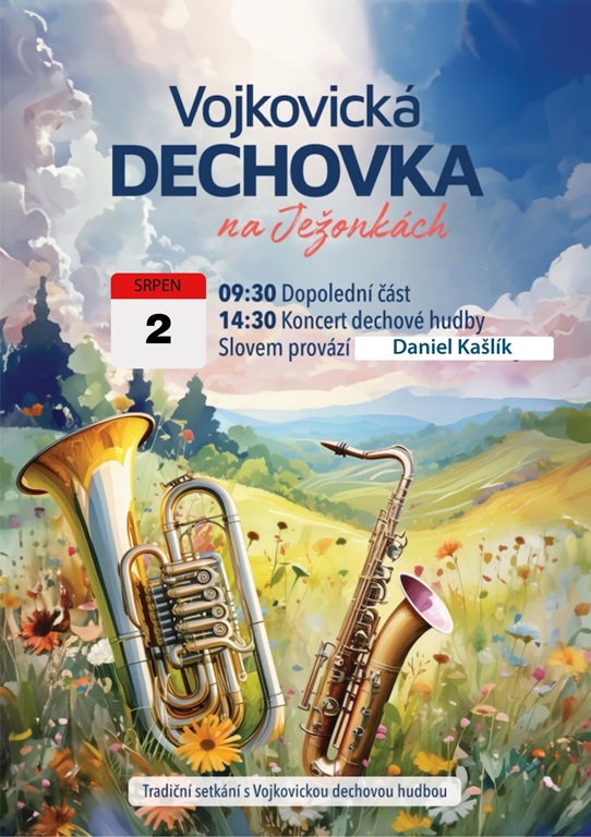 zveme Vás na další tradiční setkání s Vojkovickou dechovou hudbou na Ježonkách, které se bude konat první sobotu v srpnu 2.8.2025.